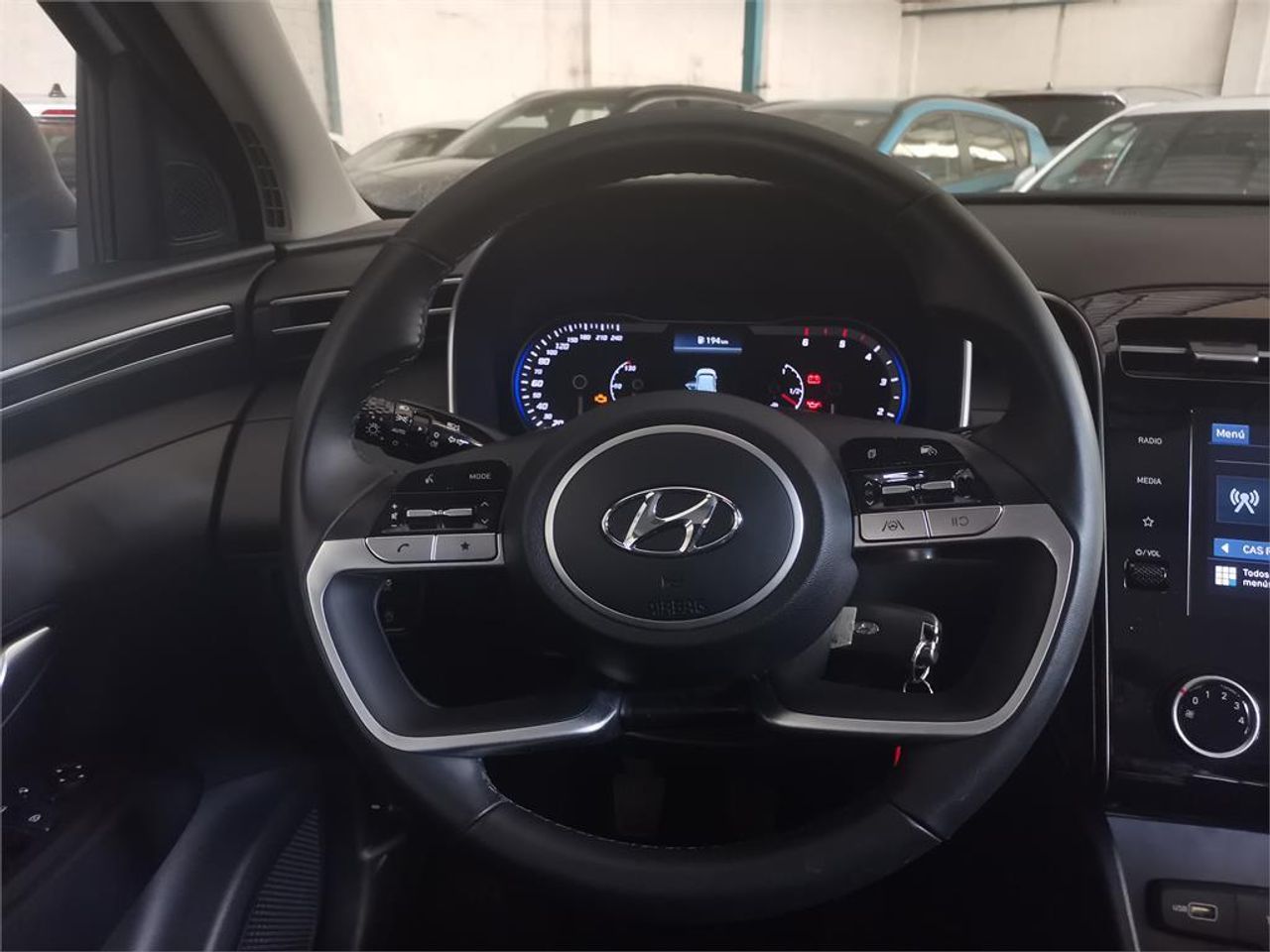 POLAR WHITEPHANTOM BLACK 1600cc, 115cv ACABADO KLASS (NEW TUCSON) Cambio manual de 6 velocidades. Camara de aparcamiento trasera con guías activas. Sistema de integración para smartphone con android auto y apple car play. Bluetooth integrado con mandos en el volante, con instrucciones por voz. Pantalla táctil color de 8". Sistema activo de seguimiento de carril LFA Sistema activo de cambio involuntario de carril. Sistema de asistencia a la frenada, con sistema FCA (detección de vehículos, peatones y ciclistas) Sistema de reconocimiento de señales. Climatizador manual. Asiento del conductor regulable en altura Control de crucero con mandos en el volante. Sistema de parada y arranque automático del motor "Stop & Go" Sensor de luces automáticas. Llantas de aleación de 17".