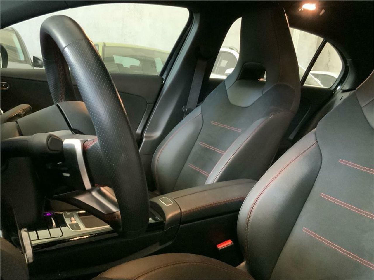 Negro cosmos Símil de cuero ARTICO/microfibra MICROCUT negro Integración de Smartphone Apple CarPlay Android Auto Cámara de marcha atrás PARKTRONIC Detector activo de cambio de carril Asistente de frenado activo Funciones MBUX ampliadas Navegación por disco duro Cambio automático 7G-DCT Techo interior de tela en color negro Climatización automática THERMOTRONIC Luces de carretera automáticas Faros LED High Performance Kit estético AMG Asientos calefactados para conductor y acompañante Iluminación de ambiente 64 colores KEYLESS-GO Propulsión Mild Hybrid DYNAMIC SELECT Paquete de aparcamiento con cámara de marcha atrás Paquete de retrovisores Navegación MBUX Premium Paquete Advanced Plus con extras digitales AMG Line Advanced Plus Llantas de aleación AMG de 45,7 cm (18"""") y 5 radi Apoyo lumbar con 4 vías de ajuste Paquete de asientos de confort Paquete de alumbrado y visibilidad