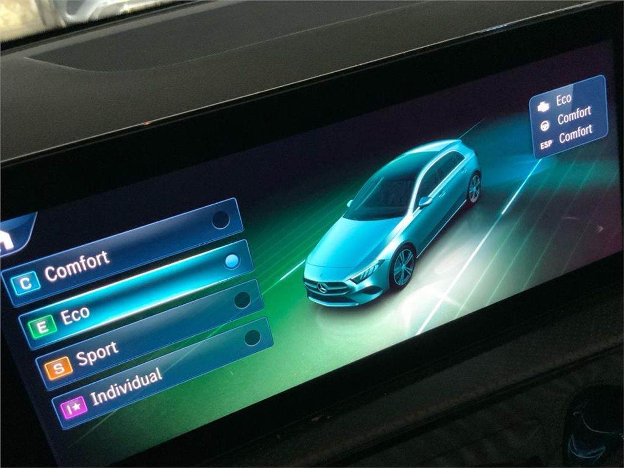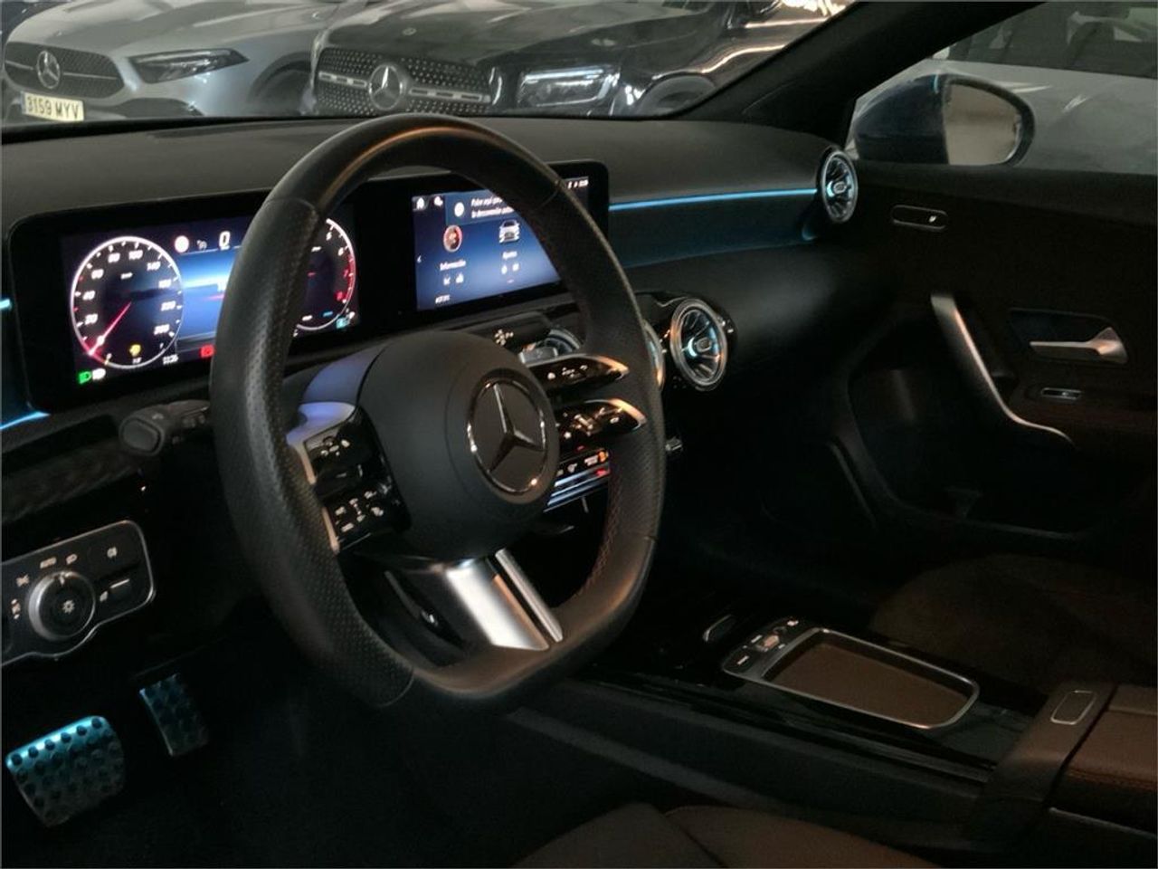 Azul espectra Símil de cuero ARTICO/microfibra MICROCUT negro Integración de smartphone Apple CarPlay Android Auto Cámara de marcha atrás PARKTRONIC Detector activo de cambio de carril Asistente de frenado activo Funciones ampliadas MBUX Navegación por disco duro Cambio automático 7G-DCT Techo interior de tela en color negro Climatización automática THERMOTRONIC Luces de carretera automáticas Faros LED High Performance Paquete USB Plus Kit estético AMG Asientos deportivos Asientos calefactados para conductor y acompañante Iluminación de ambiente 64 colores KEYLESS-GO AMG Line Propulsión Mild Hybrid DYNAMIC SELECT Paquete Business Plus Paquete de aparcamiento con cámara de marcha atrás Paquete de retrovisores MBUX Navegación Premium Paquete Advanced Plus AMG Line Advanced Plus Llantas de aleación AMG de 45,7 cm (18"""") y 5 radi Apoyo lumbar con 4 vías de ajuste Paquete de asientos de confort Paquete de alumbrado y visibilidad